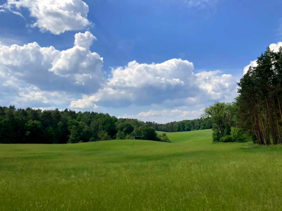 Auf beiden Seiten des Weges sanft geschwungene Hügel, grüne Wiesen mit duftenden Blumen und kleine Teiche und Tümpel, die sich harmonisch in die Landschaft einfügen. Die Kühe, denen wir begegnen scheinen auch zufrieden zu sein und kauen gemächlich vor sich hin. Brandenburger Gemütlichkeit at its best.