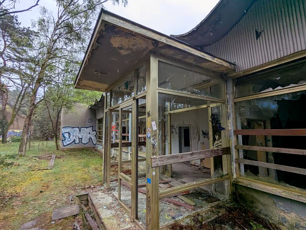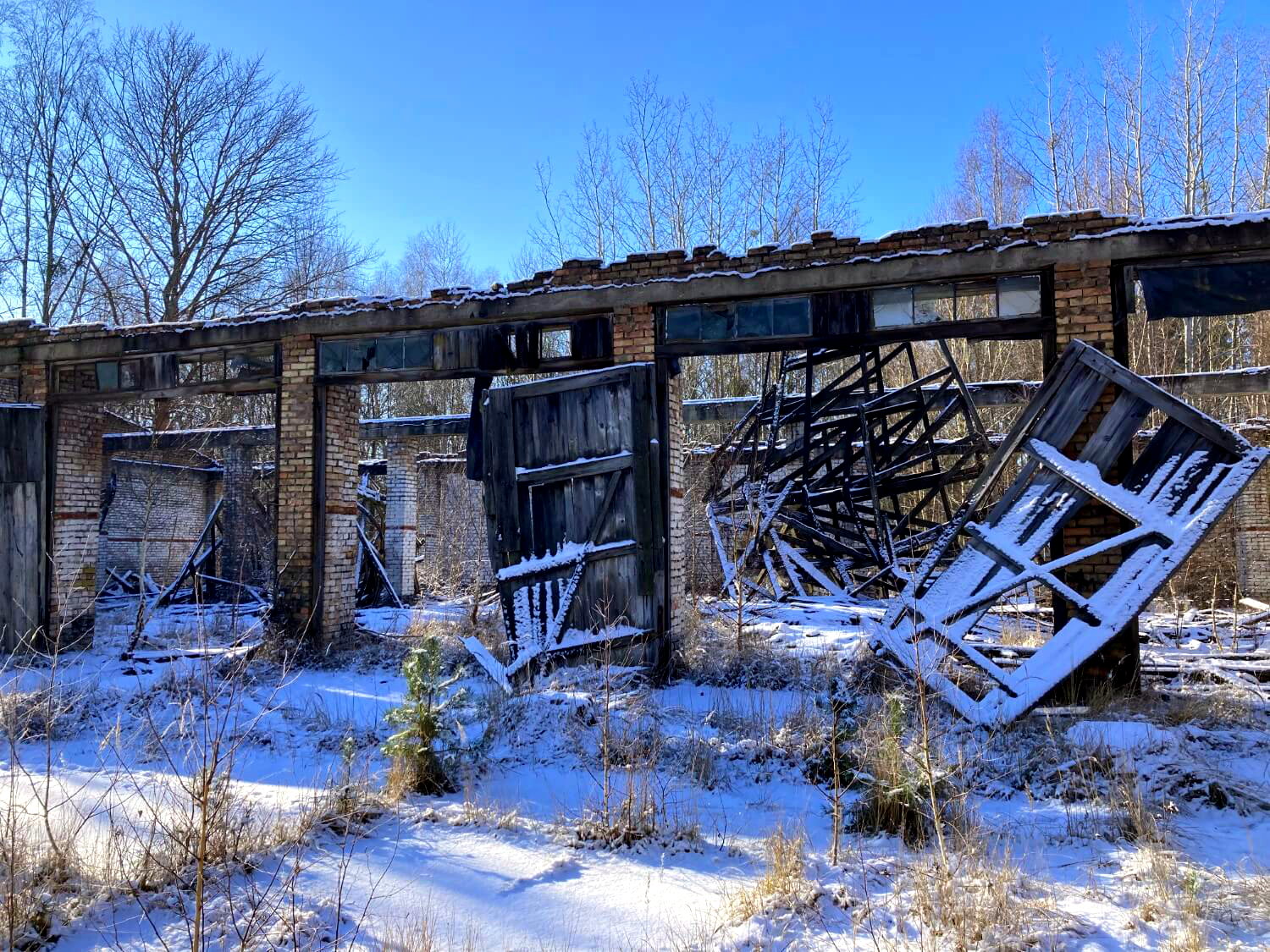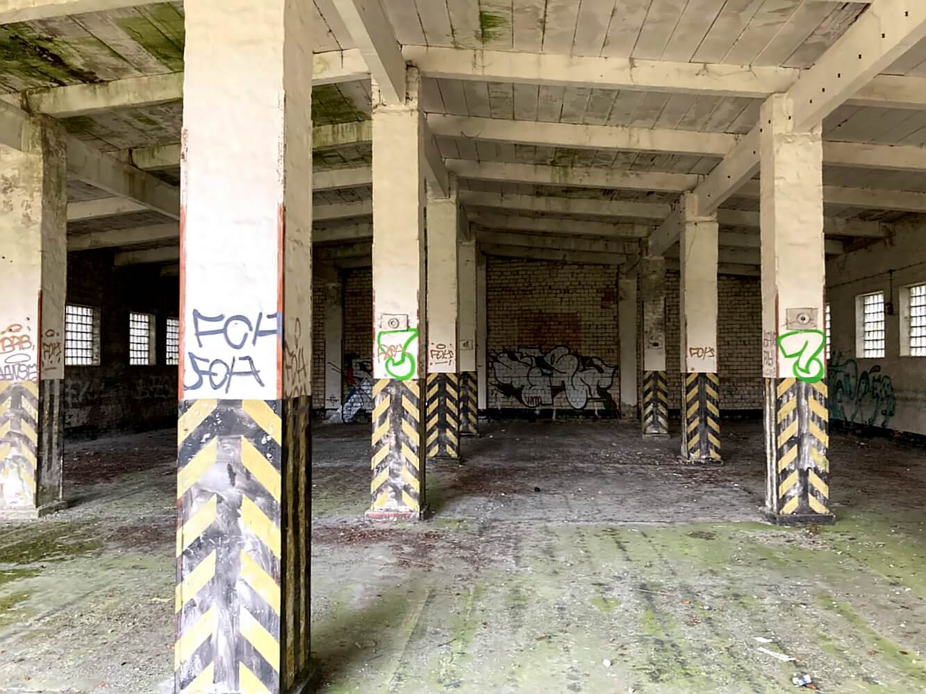 Mein vorletzter Besuch war im Jahr 2022. Ich war zusammen mit Wolf-Sören Treusch unterwegs, der eine Radio-Reportage für DLF Kultur machte. Schon damals standen nur noch 28 Gebäude, darunter die Halle mit dem Schwimmbecken und dem Übungspanzer sowie einer der Speisesäle.