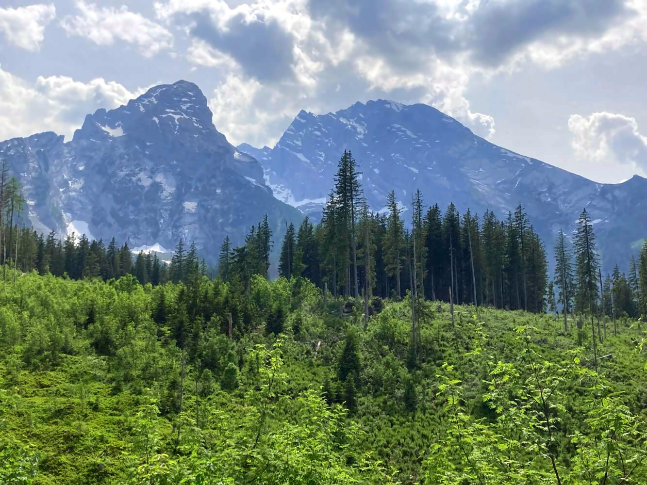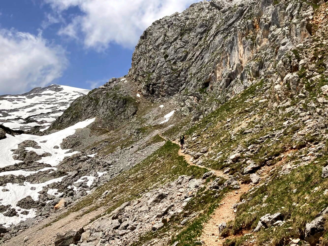 Bis zum Hundstodgatterl auf 2188 Metern ist es noch ein gutes Stück weiter (ca. 1 Stunde) – wir sind aber auch ziemlich langsam, da hier oben Mitte Juni fast alles noch tief verschneit ist. Die Schneefelder sind aber harmlos und nicht besonders steil. Außerdem sind anscheinend trotzdem genügend Leute unterwegs und wir können einfach den gespurten Wegen unserer Vorgänger folgen.