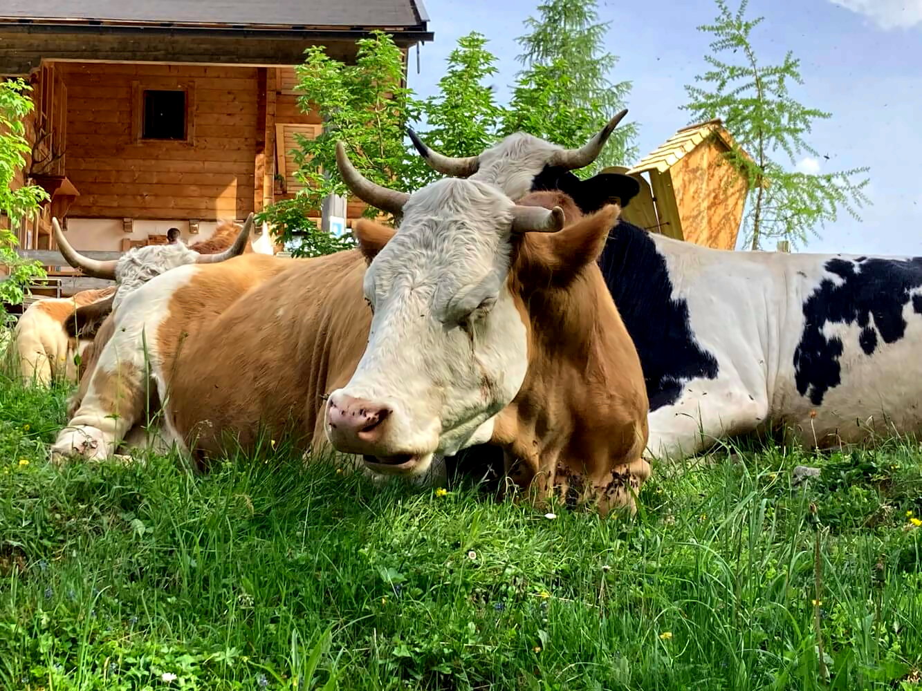 Das Ganze ist etwas ermüdend und der Weg bietet auch keine großartigen Aussichten. Das ändert sich erst, als wir uns dem Sommerbichel (1293 m) nähern und sich der Wald etwas lichtet. Von hier aus ist es dann nicht mehr weit bis zur Kührointhütte. Die Hütte ist in eine malerische Almlandschaft wie aus dem Bilderbuch eingebettet und ist der perfekte Ort, um auf der Terrasse eine Rast einzulegen und dem Bimmeln der Kuhglocken zu lauschen.