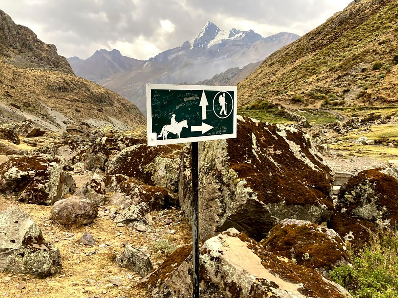 In addition to the main Valley Circuit route there’s also the Alpine Circuit, this option brings you even closer to the mountains. I hiked parts of this variant – more on that below. Both routes climb passes at around 5,000 meters. The trail is largely unmarked with only occasional old signs and “hitos” (spanish for stone cairns).