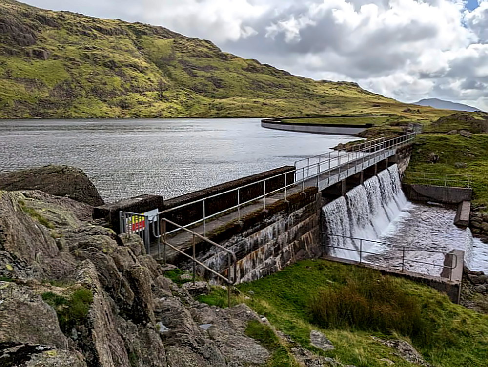 Rund um den See breitet sich mal wieder ein ausgedehntes Sumpfgebiet aus, das ich natürlich direkt durchqueren darf. Immerhin klart es jetzt ein bisschen auf, die Sonne traut sich raus und zaubert ein Funkeln auf die Wasseroberfläche. Über einen gut angelegten Pfad, der zuletzt direkt über das Wehr des Sees verläuft, steige ich in das Duddon Valley ab – offene Wiesen, Birkenwäldchen und sanfte Hügel zwischen denen sich graue Felsköpfe erheben. Ein ergreifend schöner Anblick, vielleicht das schönste Tal, das ich bis jetzt gesehen habe.