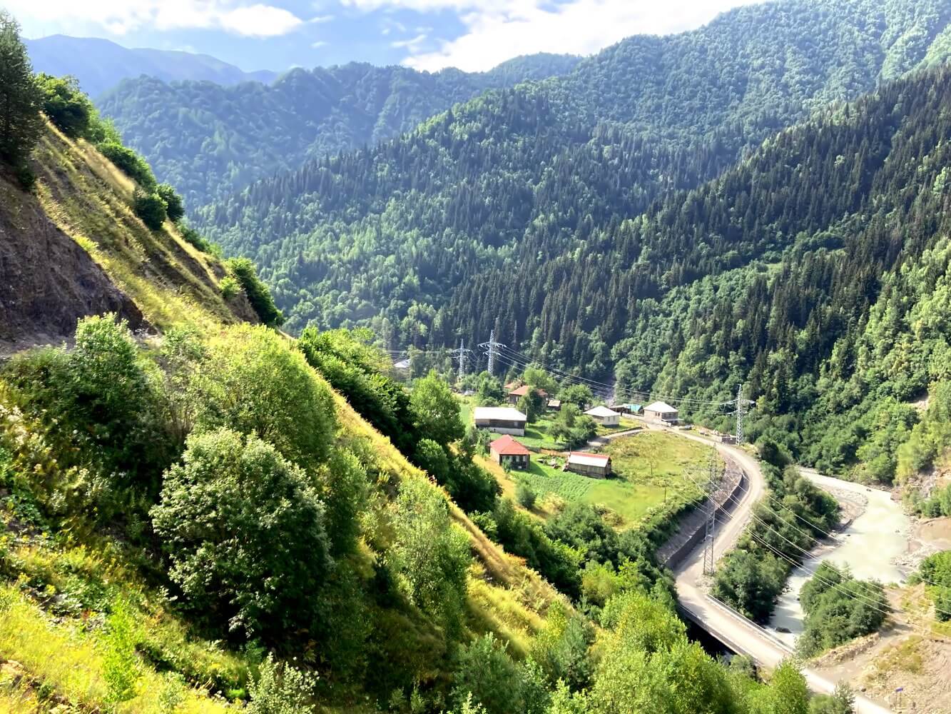 Iprali liegt schon recht weit unten im Tal. Hier verläuft auch die asphaltierte Autostraße nach Ushguli. Ich hatte für den letzten Tag daher nur noch eine langweilige Straßenwanderung erwartet. Tatsächlich biegt kurz hinter Iprali bei dem Örtchen Davberi aber ein toller Weg nach oben ab, der anschließend weit über dem Tal verläuft. Ein wirkliches Highlight zum Schluss, vielleicht sogar einer der besten Abschnitte der Wanderung.