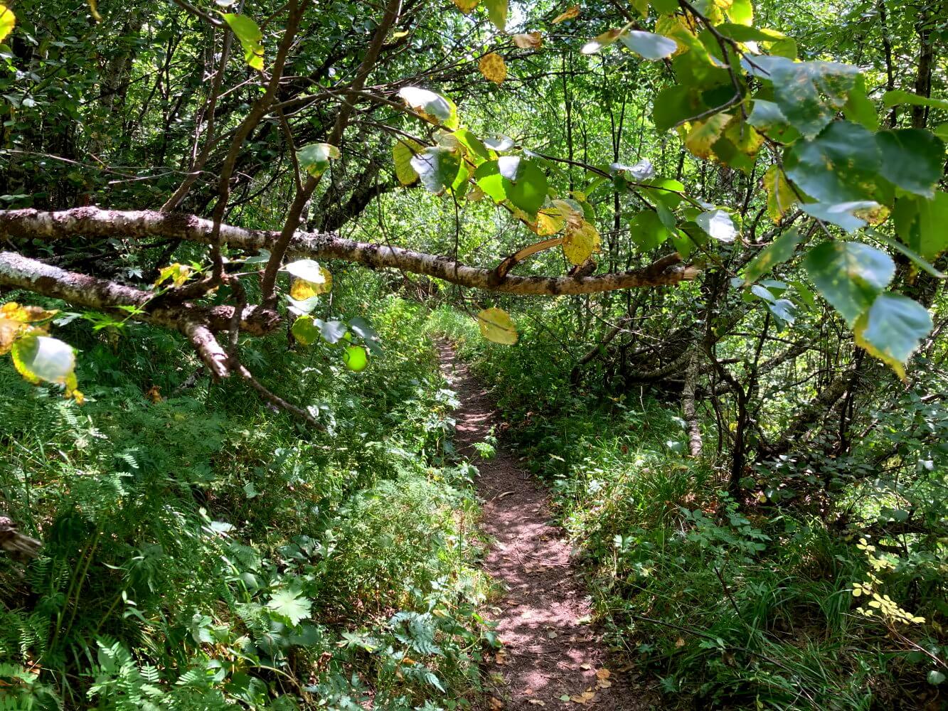 Der Einstieg zu diesem Weg ist nicht ganz leicht zu finden. Zwischen Iprali und Davberi zweigt ein Trampelpfad vom Hauptweg ab, bei dem man über ein verschlossenes Gatter klettern muss. Danach geht es dann mehr oder weniger querfeldein durchs Gehölz bis man an einer Erdrinne landet, die weiter nach oben führt. Alternativ gibt es wohl auch noch einen leichteren Einstieg hinter Davberi, für den man aber erst 10 Minuten der Straße folgen muss.