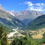 Empfehlenswert ist ein kleiner Spaziergang auf den Hügel östlich des Ortskerns. Nach ein paar Minuten kommst du auf eine kleine Anhöhe mit dem perfekten Blick auf das Shkara-Massiv und seine gigantischen vergletscherten Felswände. Das war, vor allem zum Sonnenuntergang, dann wirklich noch einmal ein schönes Bild mit dem ich zufrieden ins Bett gehen konnte.