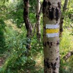 Wie auch immer du dich entscheidest: Oberhalb von Davberi wirst du in einer Wiesenlandschaft herauskommen und ab hier ist der Weg dann auch wieder klar erkennbar und deutlich markiert. In den nächsten Stunden geht es abwechselnd durch Blumenwiesen und kleine Wäldchen. So gut wie immer mit genialen Blicken ins Tal und ohne große Höhenunterschiede – Genusswandern pur.