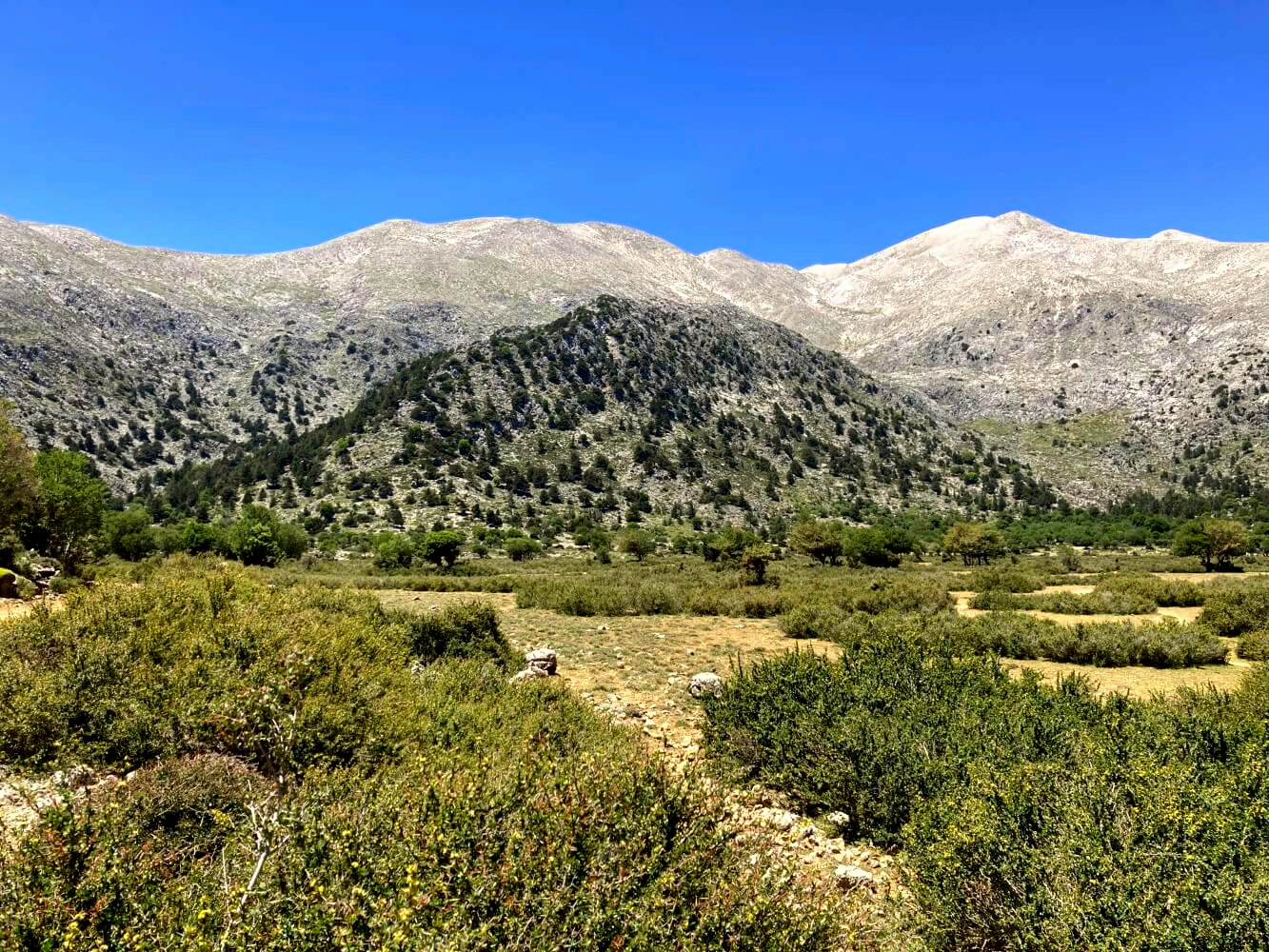 Tatsächlich handelt es sich hierbei um Bergtouren durch nahezu wegloses Alpingelände. Im Wanderführer wird die die knapp 20 Kilometer lange Strecke von Amoudari bis zum Katsivelli-Refuge im Zentrum der Lefka Ori als einzelne Tagesetappe beschrieben – das halte ich in Ost-West-Richtung für kaum machbar!