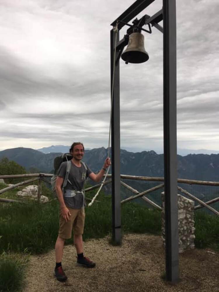 Der Bergpfad zu dem Heiligtum auf knapp 1.040 Metern ist steil und führt teilweise über Geröll, bleibt aber durchweg gut zu gehen. Auch die Orientierung ist unkompliziert. Oben angekommen finden wir in völliger Abgeschiedenheit ein liebevoll gestaltetes Marienheiligtum. Neben dem Abbild von Maria hängt eine große Glocke – ein toller Aussichtspunkt und natürlich lasse ich es mir nicht nehmen zur Feier des Tages kräftig zu läuten.
