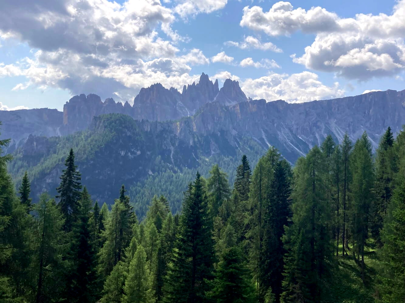 Vom Rifugio Averau läufst du erst wieder auf dem Weg Nr. 439 von gestern zurück, diesmal zum Glück herunter. Nach 20 Minuten erreichst du das Rifugio Scoiattoli. Von hier führt ein Trampelpfad zu den Cinque Torri – ein traumhaft schöner Ort, den du auf keinen Fall verpassen darfst.