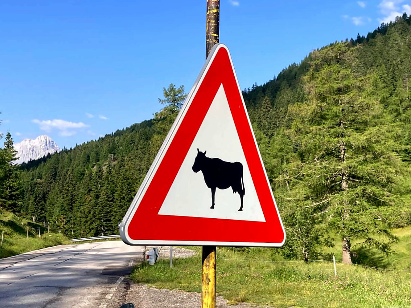 Los geht’s auf einer Schotterpiste, die in etwa einer halben Stunde talwärts zum Passo Duran führt. Hier befindet sich das Rifugio Tomè und ein Parkplatz, allerdings keine Busverbindung in die umliegenden Täler. Wer hier aussteigen will, muss sich also schon vorher eine Fahrmöglichkeit organisieren oder ein Taxi rufen.