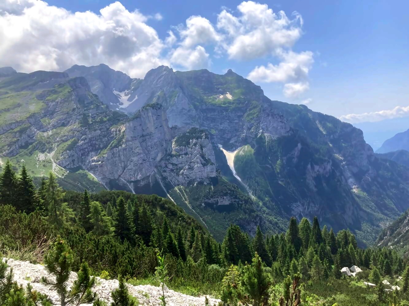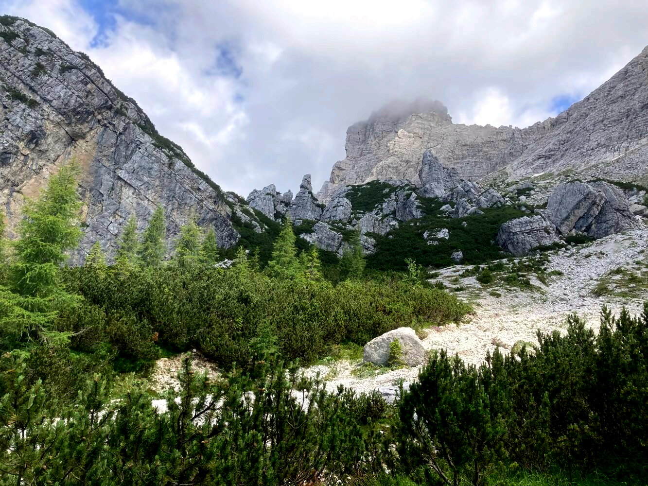Nach dem Rifugio Brutio Carestiato verändert sich der Charakter der Tour. Die großartigen Alpenpanoramen bleiben ein Stück weit zurück, das Gelände wird wilder und mediterraner, was seinen ganz eigenen Reiz hat. Außerdem verebbt der große Strom der Mitwanderer. Viele Leute steigen am Passo Duran aus und sparen sich den restlichen Weg nach Belluno.