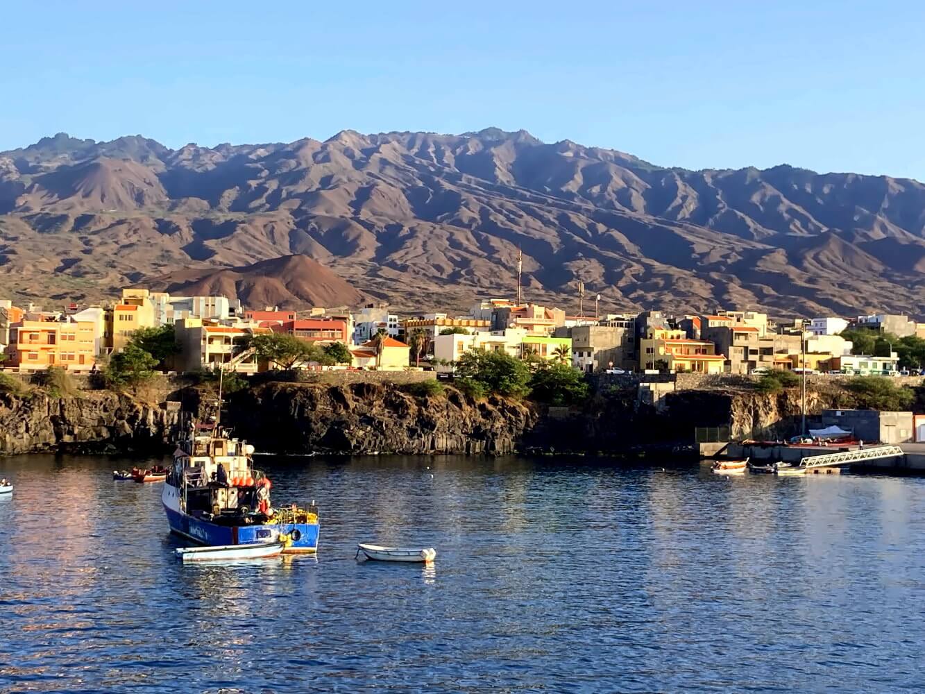 Die Fähre von São Vicente legt bereits gegen 7:30 Uhr in Porto Novo an. Theoretisch kannst du also direkt starten und loslaufen. Ich hab den ersten Tag stattdessen in der Stadt verbracht und bin ein bisschen rumspaziert, unter anderem zu dem knapp 3 km entfernten Strand „Praia dos Curraletes“, an dem man sogar baden kann. Viel zu sehen gibt es in Porto Novo sonst aber nicht, auch wenn die Hafenpromenade mit ihren schmucken Kolonialhäuschen ganz nett ist.