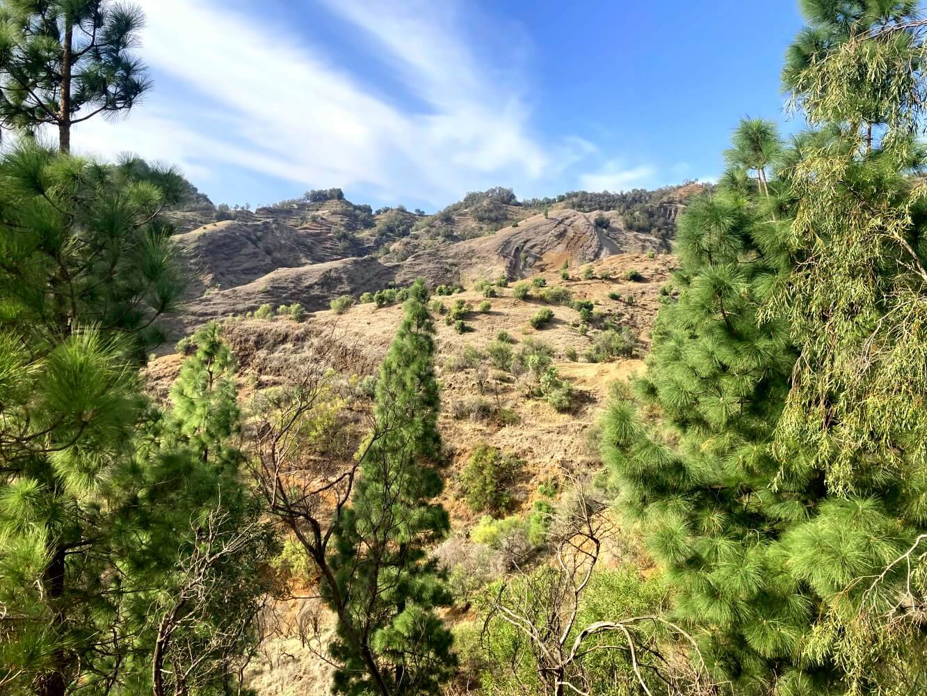 Nach einigen kurzen, etwas unangenehmen Abschnitten über Geröll wird das Gelände auf 1000 Metern zunehmend grüner. In den oberen Lagen sind einige lichte Wäldchen gepflanzt. Anscheinend bekommen die Bäume ab und zu mal Regen ab, der es über die Wetterscheide am Pico da Cruz in den Süden der Insel schafft. Nach den kargen Vulkanlandschaften der letzten Stunden eine wahre Augenweide!