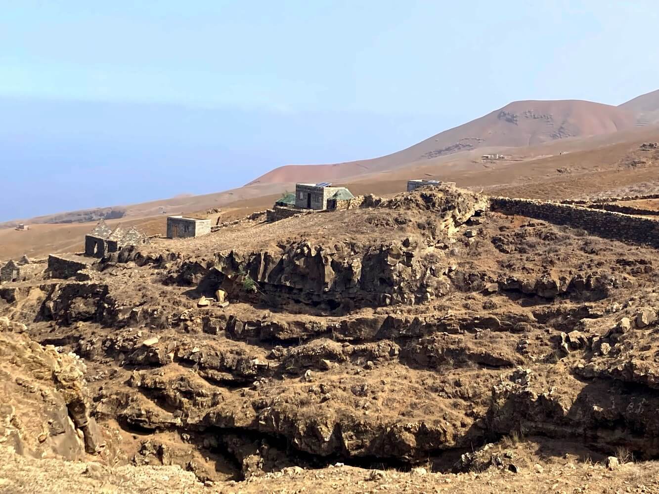 Von der Casa Luciano folgst du zunächst wieder dem ausgeschilderten Weg den Berghang herunter. Kurze Zeit später trifft der Trampelpfad auf eine Staubpiste und führt an einigen Gebäuden aus Stein vorbei – unter anderem eine kleine Merceria und die einzige Telefonzelle, die ich auf Santo Antão gesehen habe. Wen man an diesem gottverlassenen Ort wohl anrufen sollte? Gute Frage…
