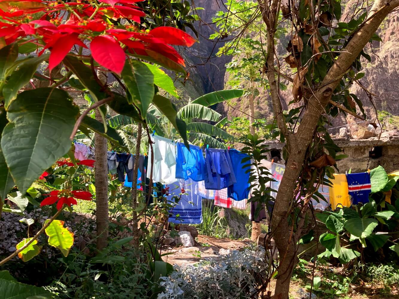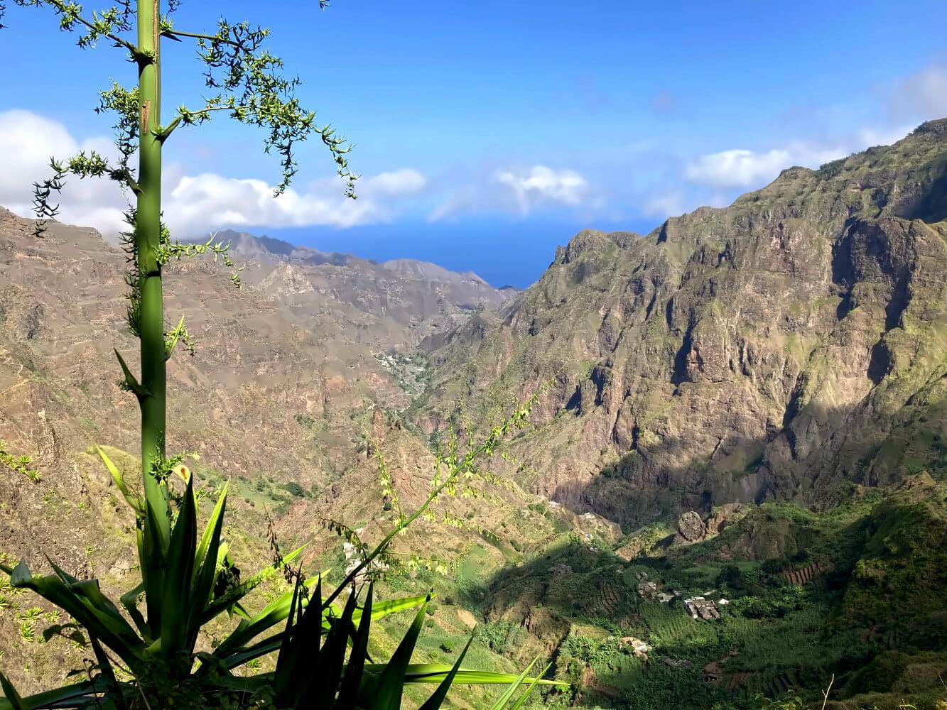 Hinter Xòxò wird der bisher schmale Pfad zu einem breiten gepflasterten Weg, der an den Gärten und bewässerten Terrassen vorbeiführt. Schließlich endet er an einer asphaltierten Straße nach Ribeira Grande. Ein letzter Blick zurück in das zerklüftete Tal verdeutlicht noch einmal sehr anschaulich, wie viele Höhenmeter du die letzten Stunden eigentlich zurückgelegt hast.