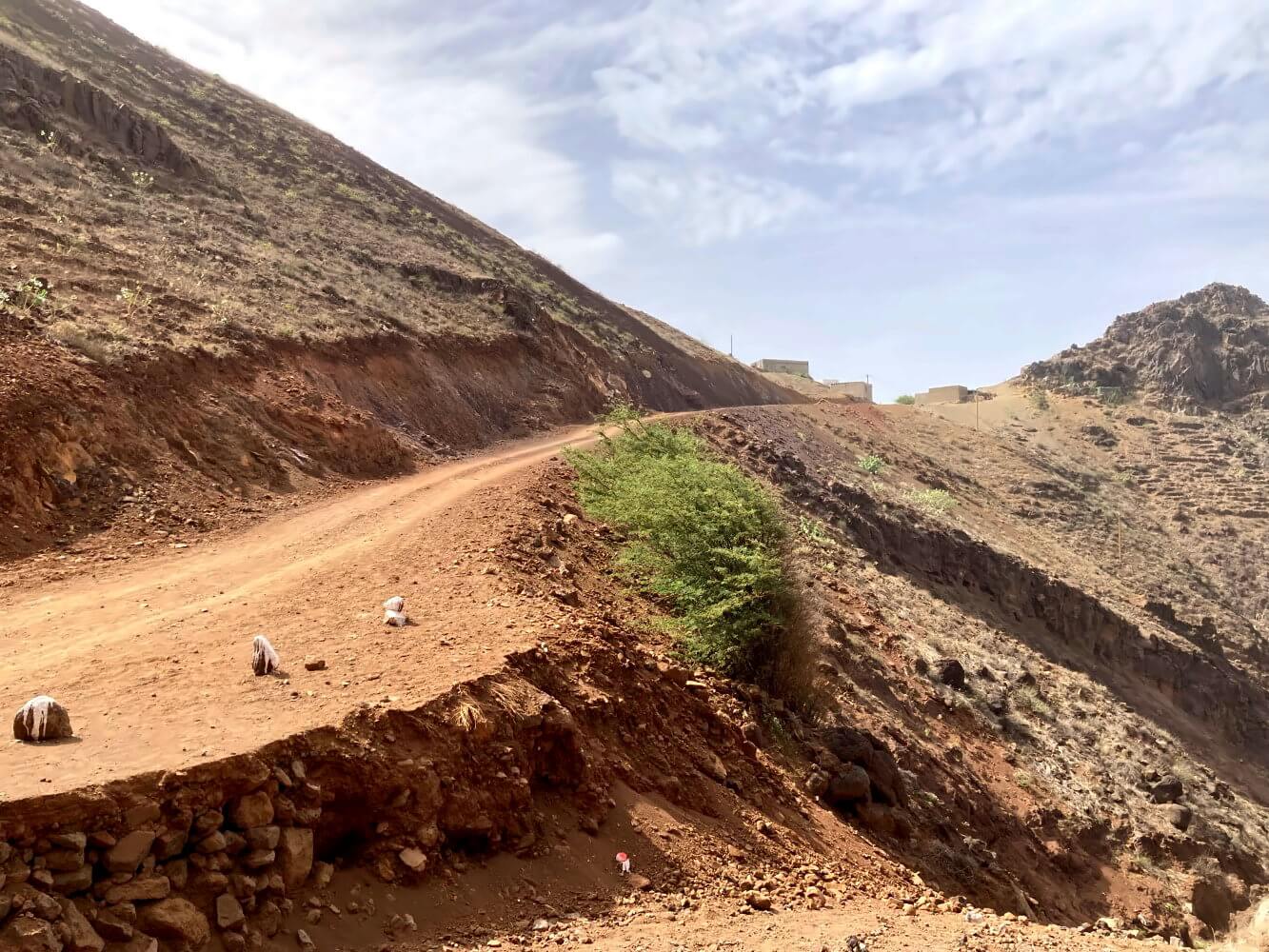 Dieses Teilstück ist etwas langweilig, da es auf einer Schotterpiste verläuft, die gerade zu einer Straße ausgebaut wurde, als ich da war. Gut für die Einwohner, nicht so toll für den Wanderer. Die auf den Karten eingezeichneten Wege nach Ribeira da Cruz waren entweder halb verschüttet oder überhaupt nicht mehr aufzufinden. Ich bin die letzten paar Kilometer also wohl oder übel an Baggern und Bauarbeitern vorbei über die staubige rostrote Piste spaziert.