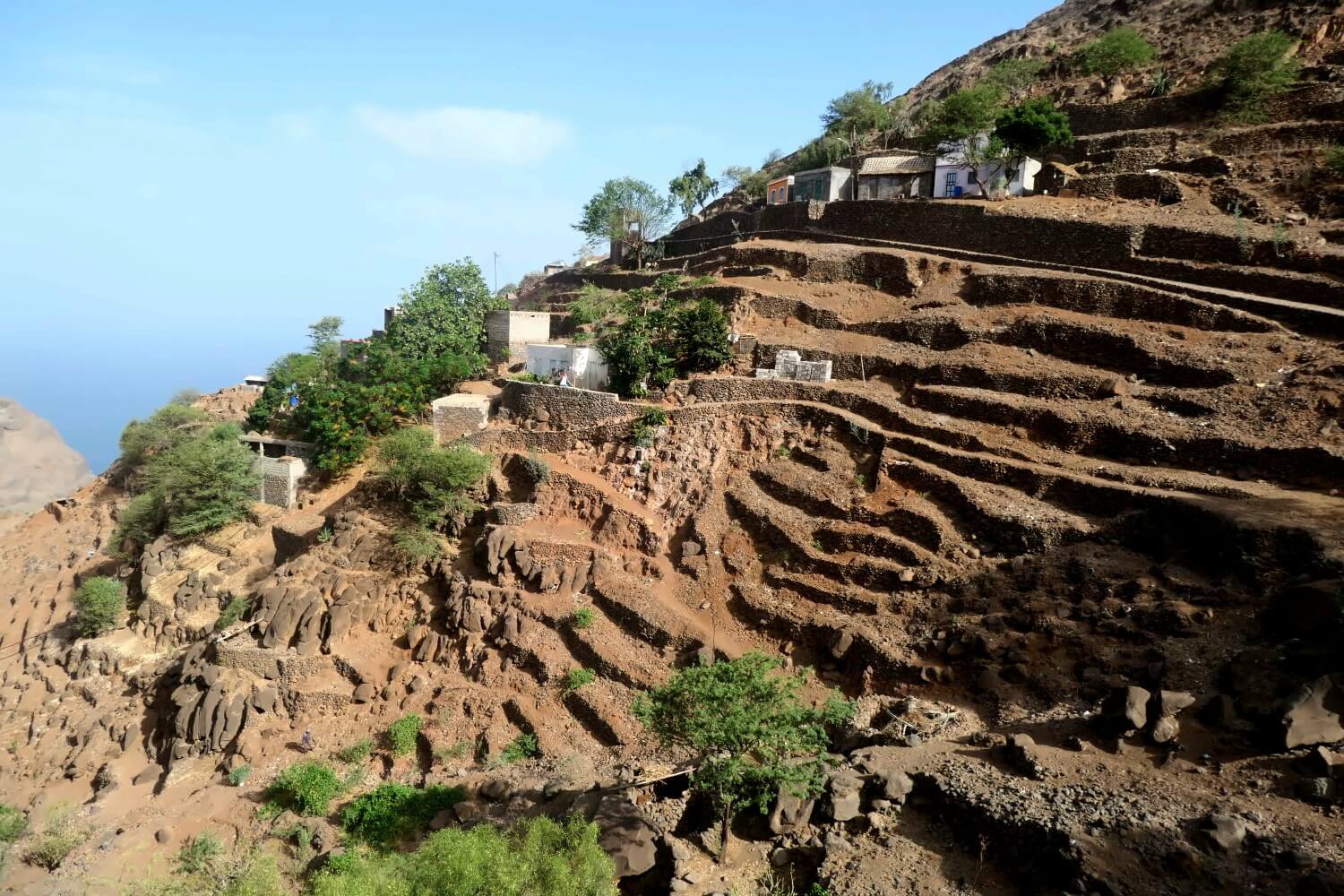 Das aber nur am Rande. Wenn du der Küste folgst, gehts es zunächst wieder nach Norden, diesmal aber auf der anderen Seite des Ribeira do Figueiral. Dabei läufst du zuerst durch die Terrassenkulturen, die wir gestern nur von oben gesehen haben. Kurz vor Figueiras de Baixo biegst du nach Westen ab und läufst ein Stück zwischen den verstreuten Häuschen bis zum Sattel des nächsten Bergrückens.