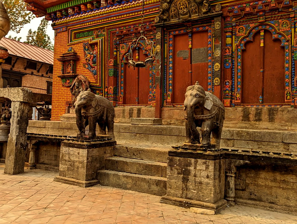 Highlight des Pagoden-Tempels sind die äußerst fantasievollen Skulpturen und die farbenfrohen Holzschnitzereien der diversen Götter und mythologischen Figuren. Auch wenn man keine oder wenig Ahnung über den Hinduismus hat (so wie ich), ist das schön zum Anschauen. Die meisten Besucher sind Inder oder Nepali, westliche Touristen habe ich hier nur sehr wenige gesehen.