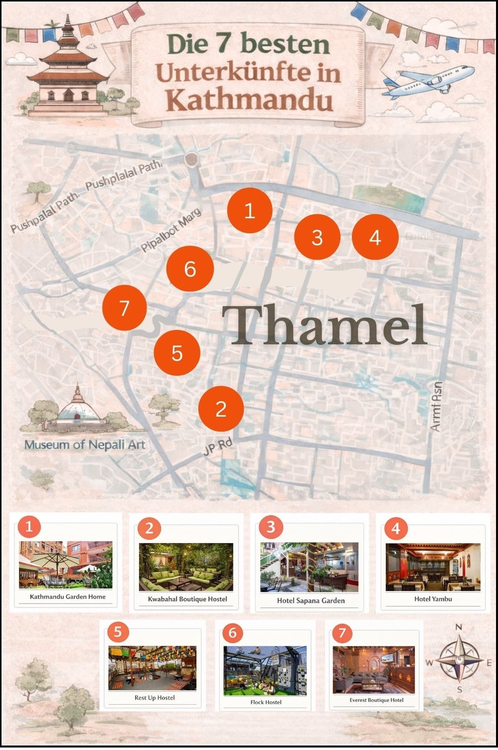 Bevor ich den Artikel geschrieben habe, habe ich mal nachgezählt: In den letzten paar Jahren war ich zwischen meinen diversen Wander-Touren in Nepal sage und schreibe 13 mal in Kathmandu – inzwischen kennen mich sogar schon die Besitzer der Trekking-Shops und der nette Mann mit der Flöte auf der Chaksibari Marg. Natürlich waren bei den vielen Übernachtungen auch ein paar Fehlgriffe dabei. Damit dir das nicht passiert, kommen jetzt meine Tipps.