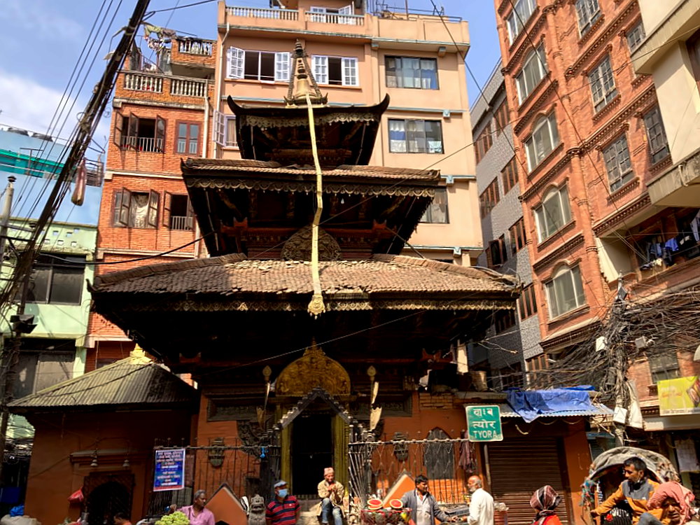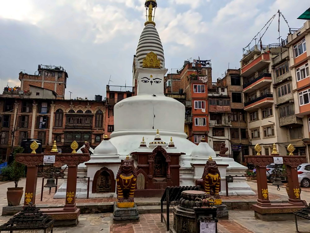 Gut für eine erste Erkundung eignen sich die beiden großen Hauptstraßen Thamel Marg und Chaksibari Marg. Besonders lebhaft geht es an der Straßenkreuzung Chhetrapati Chowk zu. In den engen Seitenstraßen von Chhetrapati finden sich viele einheimische Läden, der Verkehr ist hier teilweise unglaublich. Wenn du vom Chhetrapati Chowk nach Süden läufst, kommst du in ca. 15 Minuten automatisch zu unserer nächsten Sehenswürdigkeit.