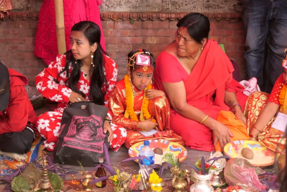 Die lebende Göttin ist eine der interessantesten Traditionen des Kathmandu-Tals. In der Newari-Kultur wird ein junges Mädchen als „Kumari“ auserwählt und als lebende Inkarnation der Hindu-Göttin Durga verehrt. Bis zur ersten Menstruation lebt sie in einem speziellen Palast, dem Khumari Ghar. Dort zeigt sie sich regelmäßig der Öffentlichkeit.
