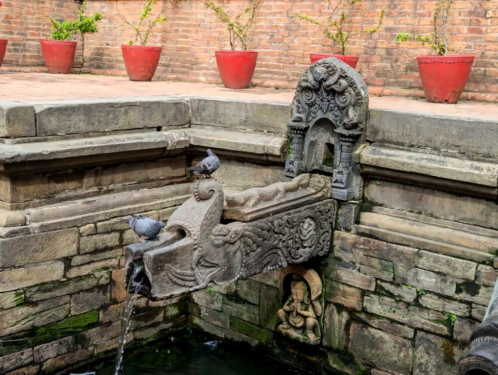 Hauptattraktion sind die 22 fantasievoll gearbeiteten Wasserspeier in Form von Krokodilen und anderen Wasserungeheuern rund um einen zentralen Teich. Außerdem gibt es einen kleineres Becken, in dem eine Steinstatue von Vishnu auf einem Bett aus Schlangen liegt – ein Replik der Statue in Budhanilkantha (siehe Highlight 19). Für westliche Besucher ist eine kleine Eintrittsgebühr von 100 NPR fällig.