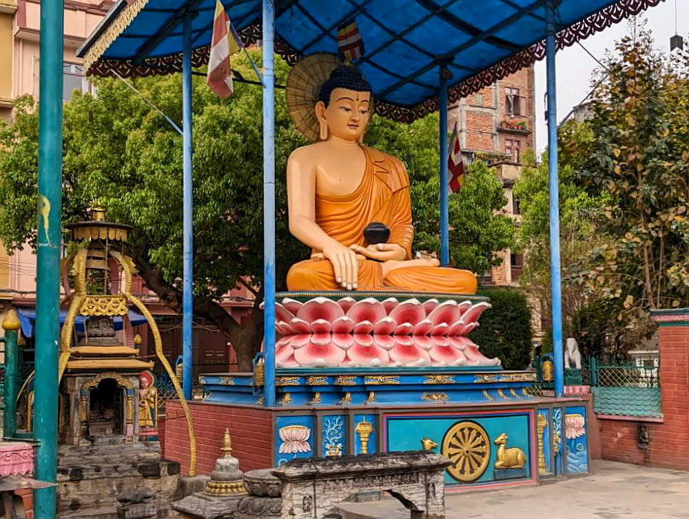 Nur einen Katzensprung von der Swayambhu Stupa entfernt lohnt sich ein Besuch des Amideva Buddha Park, hier beginnt auch die Straße auf den Hügel. Die Anlage beeindruckt mit der größten Buddha-Statue von Nepal (ca. 20 Meter hoch) und lässt sich hervorragend mit dem Trip zum Monkey Temple verbinden. Trotzdem wirst du hier vermutlich deutlich weniger Touristen antreffen.