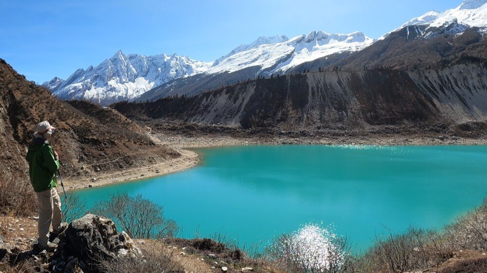 Halbtageswanderung oberhalb von Bhimtang zum von riesigen Moränen eingekeilten Ponkar Lake. Verläuft teilweise auf dem Abstiegsweg vom Larke Pass, aber auf der normalen Route ist der See nicht zu sehen (ca. 4 Stunden)