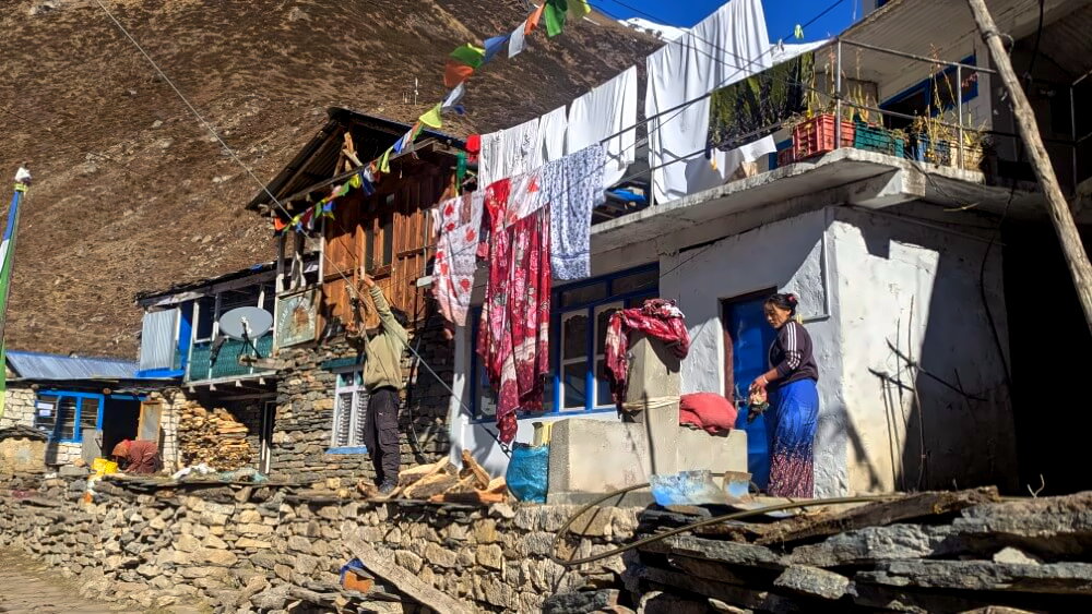 Aber natürlich bleiben wir und die zwei Tage im nächsten Ort Samagaon werden zu meinen schönsten Erinnerungen auf dem Trek. Hier können wir nochmal durchatmen, bevor es zum Pass geht. Das Dorf wirkt wie der letzte Außenposten der Zivilisation und mit seinen flachen Steinhäusern fühlt es sich schon mehr wie Tibet als Nepal an.