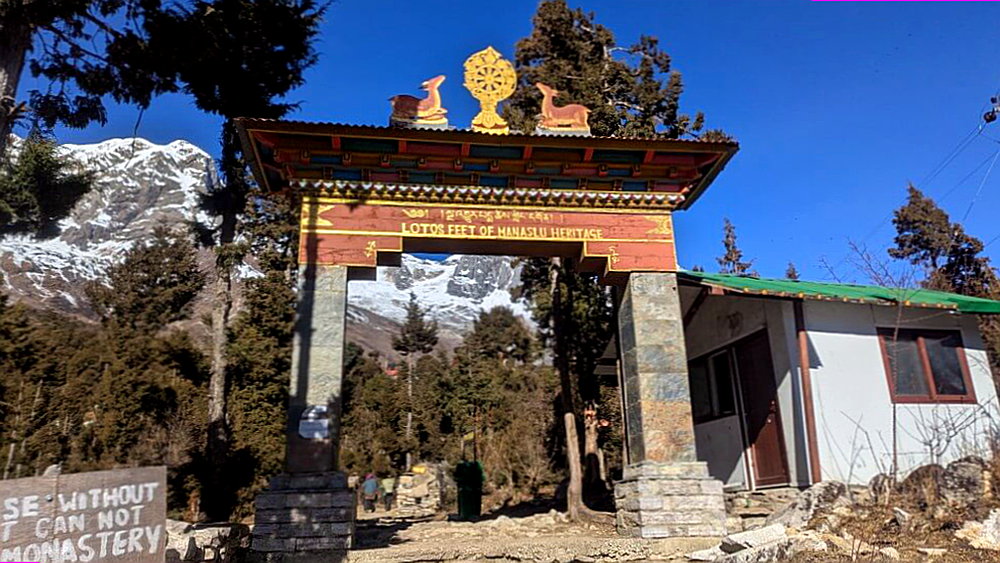 Die Wanderung durch das Nubri-Tal ist der erste große Wow-Moment auf dem Manaslu Circuit. Nicht dass der Trek bis hierhin langweilig war. Aber die Bergwelt, die sich nun vor uns öffnet, übertrifft jede Erwartung. Auf der Seite der gewaltige Monolith des Manaslu, vor uns das Dörfchen Lho und die goldenen Dächer des Klosters Rimbung auf einem Hügel, direkt dahinter ein weiterer Gigant aus Schnee und Eis: Naike Peak (6.211 m).