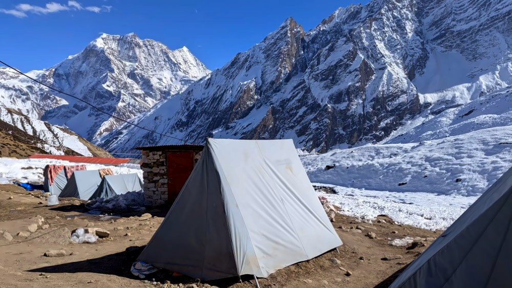 | Tag 6 | Samagaon (3.520 m) → Manaslu Basecamp (4.800 m) | 14 km | 8 Stunden | Akklimatisationstag |
