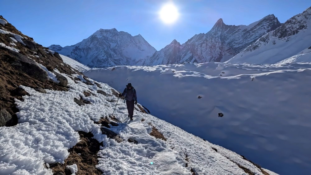 - 🥾 Microspikes: Sind vor allem im Herbst sinnvoll, der Guide kann das schon vor dem Trek einschätzen. Microspikes bekommst du preiswert in Kathmandu/Pokhara (5-10 Euro).