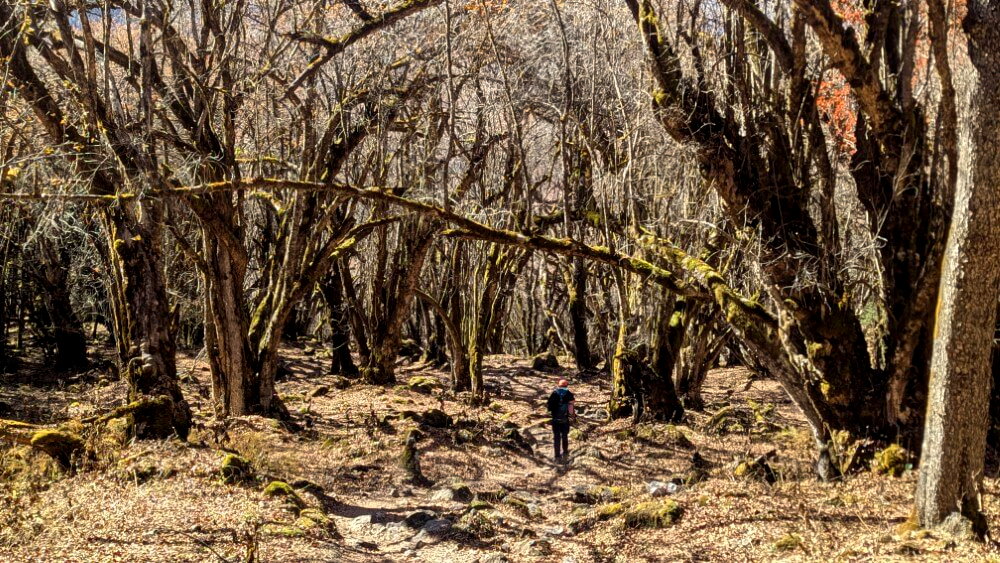 Bereits nach zwei Tagen auf dem Trek sind wir gut eingespielt. Jeder geht in seinem eigenen Rhythmus. Prakash hat inzwischen verstanden, dass er nicht permanent Babysitter spielen muss. Manchmal gehen wir zusammen, manchmal jeder für sich. Es ist eine angenehme Wanderung und die traumhaft schöne Umgebung tut ihr übriges dazu, dass wir das voll genießen.