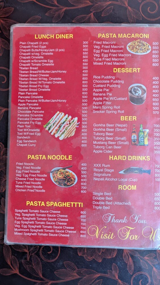 - 🚿Duschen & Hygiene: Viele der Lodges verlangen eine geringe Gebühr für warme Duschen (200 – 300 NPR, in den höheren Lagen teurer). In Dharmasala habe ich keine Dusche gesehen.
