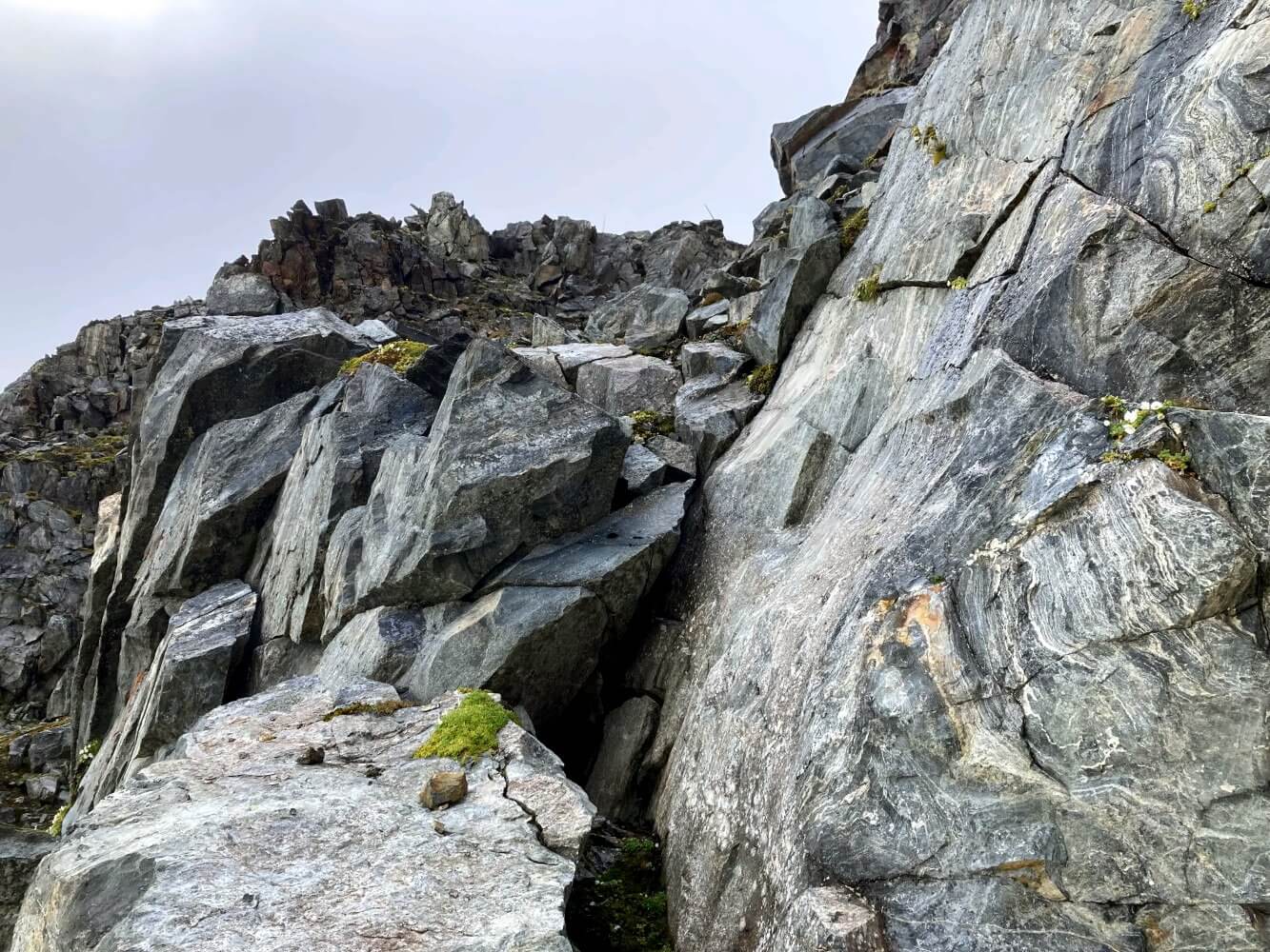 Was ich an dem Weg besonders reizvoll fand war, dass er fast konstant ziemlich genau unterhalb der Firngrenze verläuft, ohne diese wirklich zu berühren. Es ist eine Welt, die vom ewigen Eis der Gletscher geprägt ist: Wasserfälle und Sturzbäche sind deine ständigen Begleiter. Durch das abfließende Wasser bilden sich Hochmoore und Gebirgsseen in der alpinen Tundra. An vielen Stellen sind die Felsen über Jahrtausende von der Kraft der Gletscher glattgeschliffen.