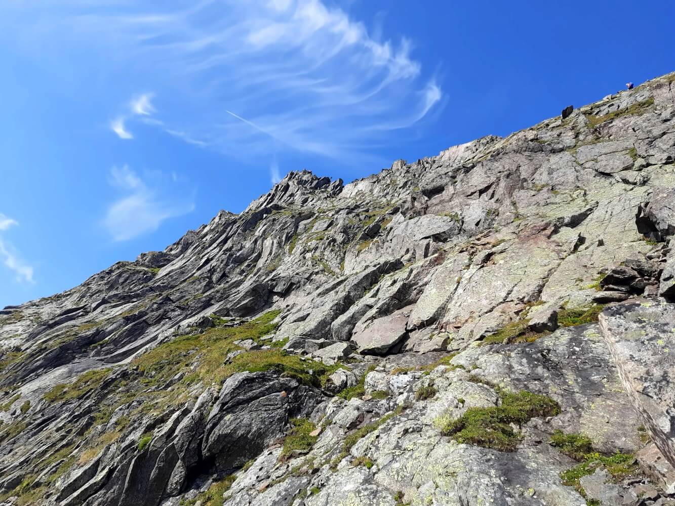 Wer halbwegs Bergerfahrung hat, dürfte auf dem Grat keine größeren Probleme bekommen. Das Gelände ist an einigen Stellen schon ein bissel ausgesetzt, aber der Grat ist immer ausreichend breit (mindestens 2-3 Meter). Es ist also nicht so, dass du direkt am Abgrund läufst. Andererseits ist es aber auch keine Wanderung mehr, sondern fordert an etlichen Stellen den Einsatz der Hände. Wenn du gerne kraxelst, bist du hier voll in deinem Element!