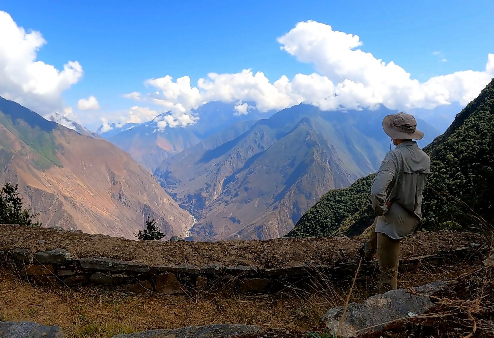 Die Trekking-Route durchquert nach dem steilen von Capuliyoc Abstieg zunächst die Schlucht des Rio Apurímac und steigt anschließend genauso steil direkt nach Choquequirao auf. Die Stadt liegt auf einem Plateau, dahinter geht es über den ersten 3.300 Meter hohen Pass direkt in die nächste Schlucht: das Tal des Rio Blanco. Unterwegs bietet sich ein Camp in den malerisch gelegenen Inka-Ruinen von Pinchaunuyoc an.