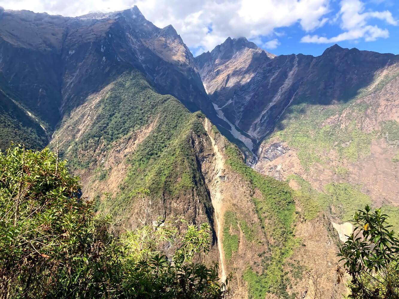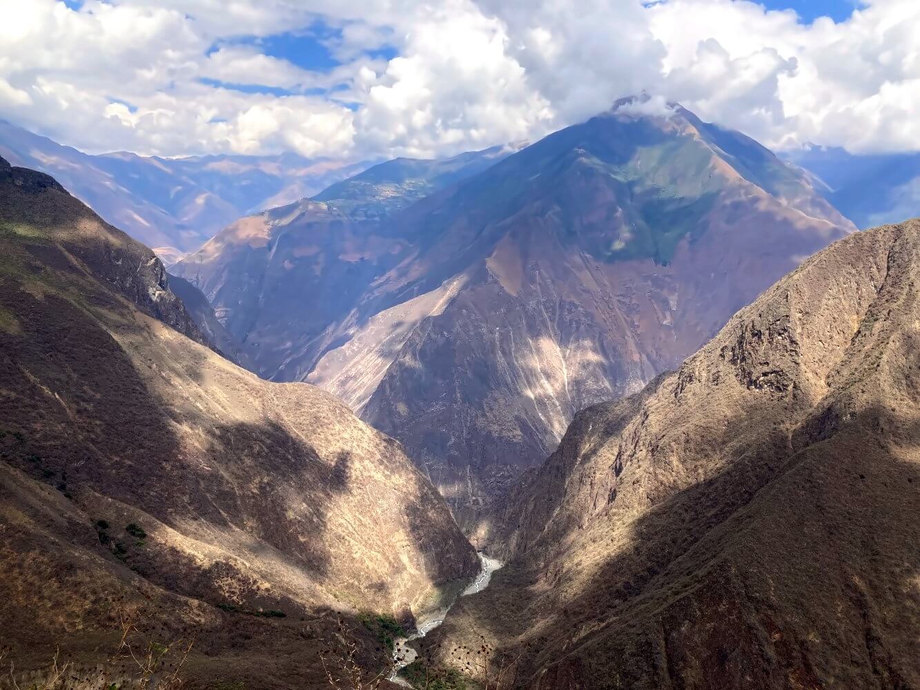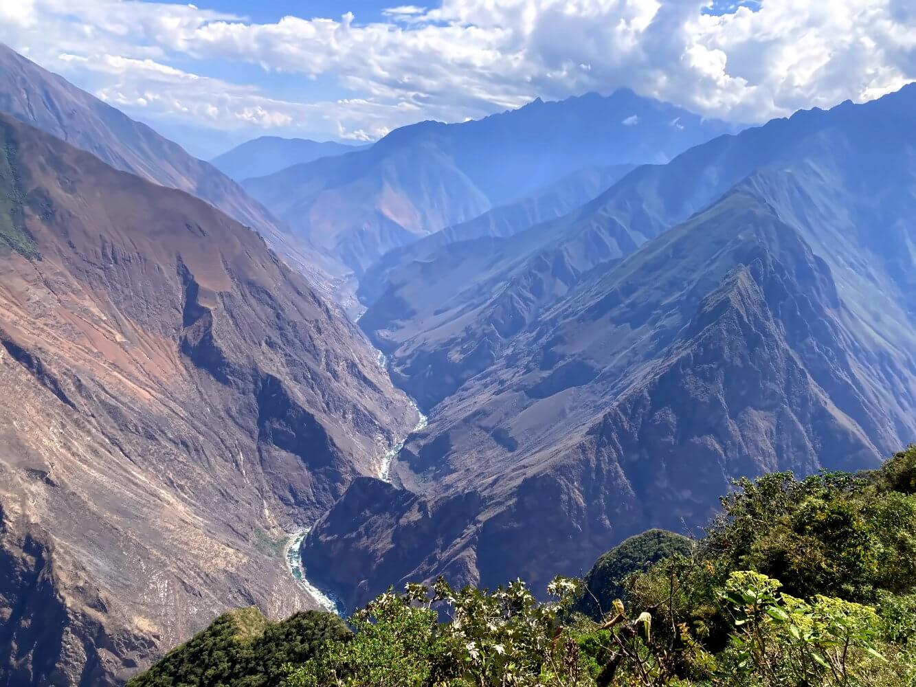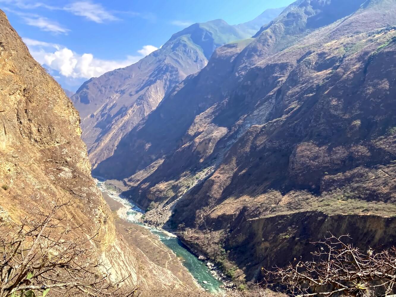Der Choquechirao Trek führt durch die Ausläufer der Cordillera Vilcabamba, ein bis zu 6.000 Meter hohes Gebirge mit einem hervorstechenden Merkmal: extrem tiefe, schmale Flusstäler. Die Canyons dürften zu den tiefsten Schluchten der Welt zählen und sind zumindest meinem Empfinden nach ein gutes Stück tiefer als der Colca Canyon, der ja gerne als die tiefste Schlucht Perus bezeichnet wird. Man läuft gleich zu Beginn der Tour 1.500 Meter runter in die Schlucht des Rio Apurímac und auf der anderen Seite direkt wieder hoch.