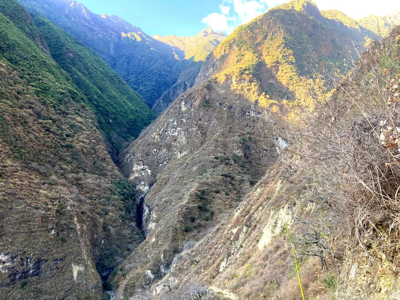 Später ziehen Wolken auf, der mystischen Stimmung tut das keinen Abbruch. Die dschungelbewachsenen Steilwände des Canyons, Gletscher, die zwischen den Wolkenfetzen hindurchblitzen – was für eine Mischung. Und von jedem Punkt geht es so unendlich weit in die Tiefe. Ich verliere völlig das Gefühl für Distanzen, weil der Horizont fehlt. Eine vollständig vertikale Welt. Dass Menschen hier überhaupt Wege gebaut haben, erscheint fast schon vermessen. Und zumindest ein bisschen muss ich dafür auch büßen: Jeder Höhenmeter ist mühsam erkauft.