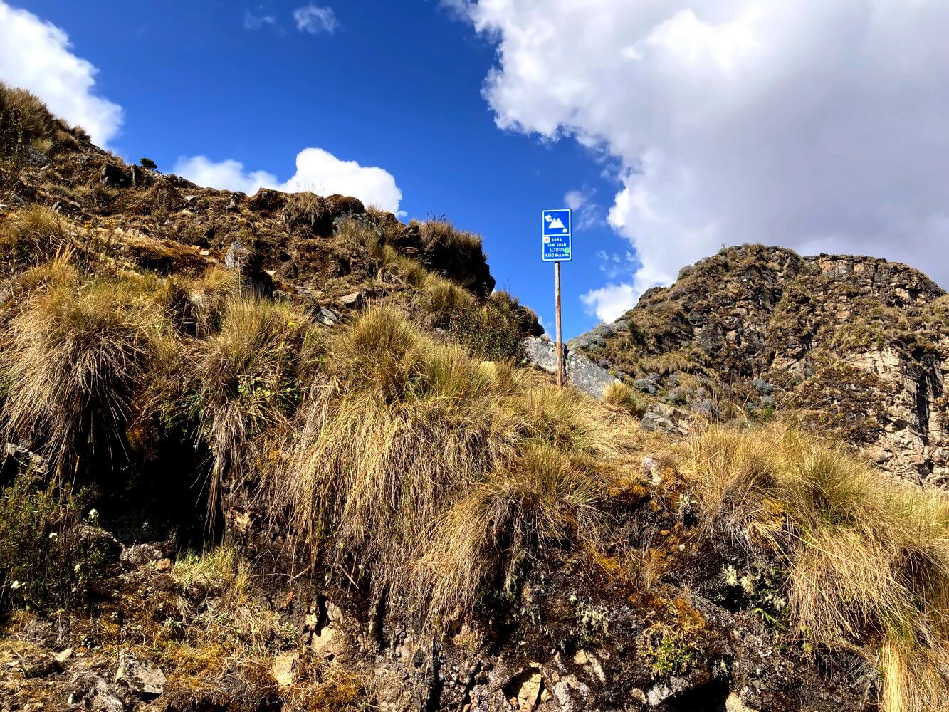 Zum Schluss bleibt der Dschungel zurück und es geht durch zunehmend kargere Punagras-Landschaften. Der letzte Anstieg erfolgt über alte Treppen. Vielleicht noch von den Inka? Kurz vor dem Pass komme ich an der verlassenen Mina Victoria vorbei. Dann habe ich den höchsten Punkt erreicht, die „Abra Victoria“ auf 4.150 Meter.
