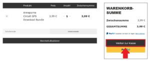 1. Choose the product, select the amount – usually 1 – and click on „add to cart“ (In den Warenkorb)