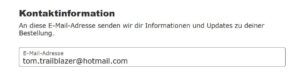 3. Under the heading „contact information“ (Kontaktinformation) enter your email-adress. The order with the files will be sent to this email.