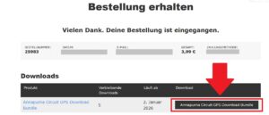 8. On the next screen your order will be confirmed. Under the heading „Downloads“ you will find your files, together with the number of remaining downloads and the expiration date of the downloads. Click on the name of the bundle on the right to start the download immediately.