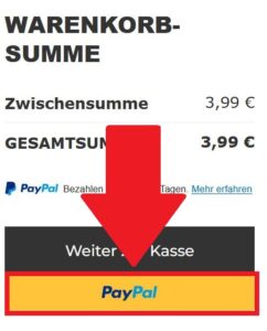 2. You can also first add the product to your cart as described above and then click on „PayPal“ in the next screen.