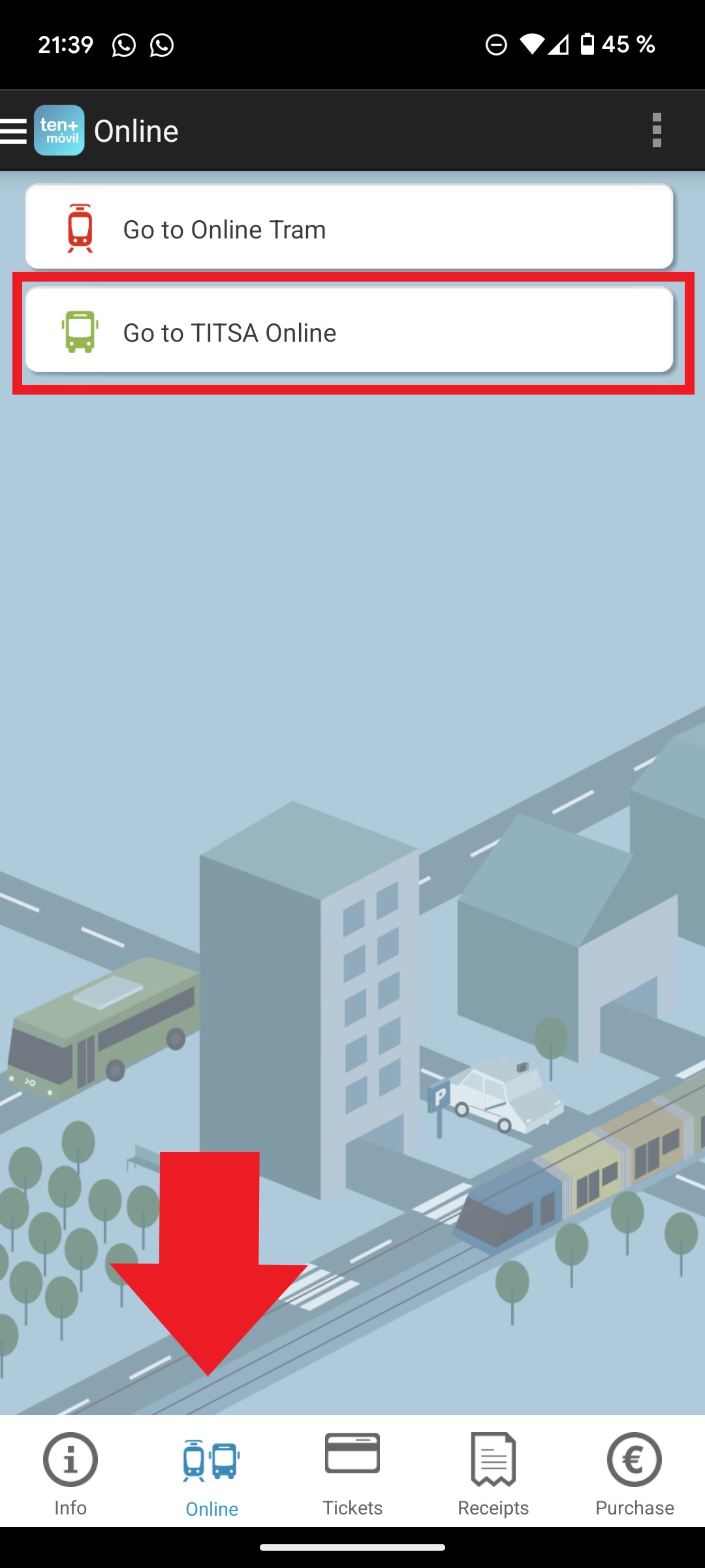 Eine weitere Möglichkeit ist die App Ten+ Móvil. Diese App bietet im Prinzip die gleichen Funktionen wie die TITSA-App. Im Hauptbildschirm tippt man auf „Online“ und dann auf „Go to TITSA Online“. Danach landet man auf der Übersichtsseite.