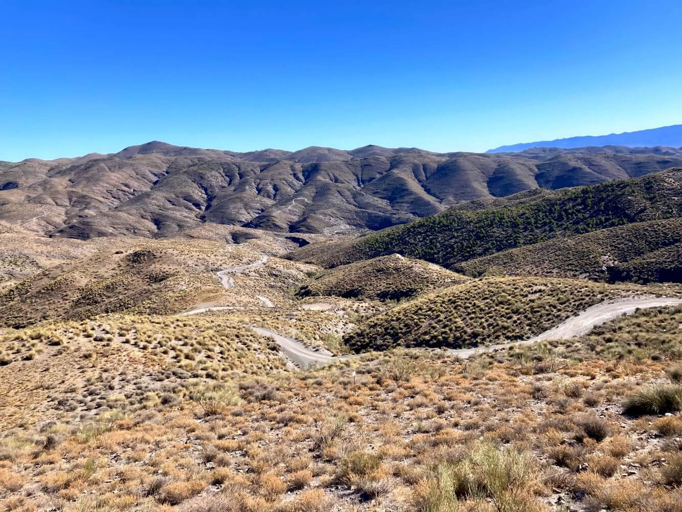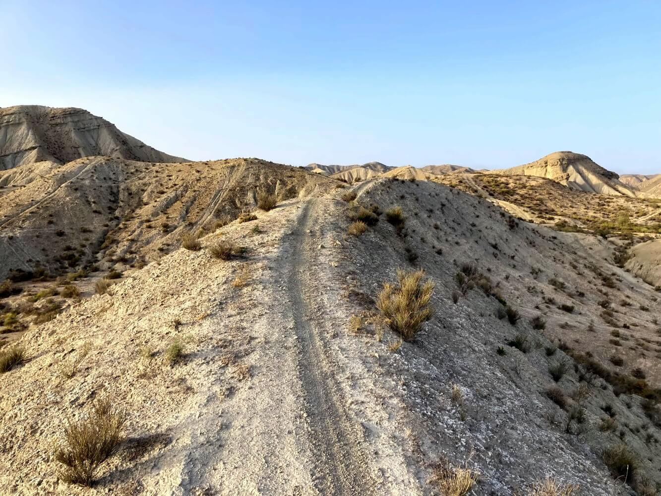 Auf einer Offroad-Piste komme ich an ein paar weiteren verlassenen Ortschaften vorbei. Zunächst passe ich noch auf, dass mich niemand zufällig sieht, aber irgendwann wird klar: Hier lebt niemand mehr. Die einzigen, die mir begegnen, sind eine Herde Steinböcke. Am späten Nachmittag erreiche ich schließlich die Anhöhe vor Gergal und schlage mein nächstes Lager auf.