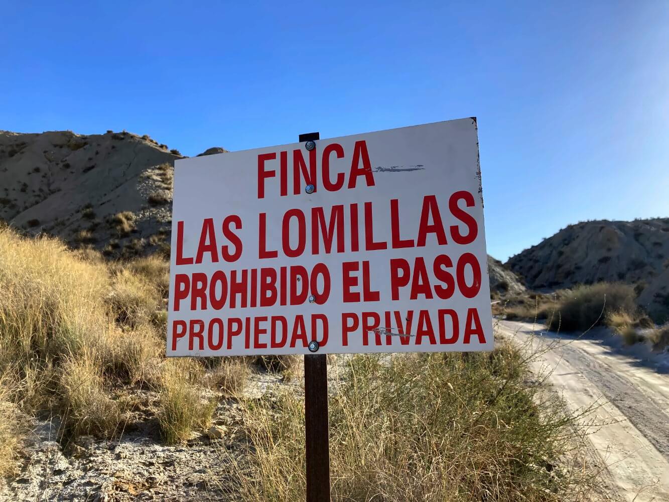Meine Vermutung: Die Absperrungen dienen vor allem dazu, Camper mit Wohnmobil abzuhalten in die Tabernas-Wüste reinzufahren. An den Rändern der Wüste habe ich etliche inoffizielle Stellplätze gesehen und es gibt auf YouTube auch zahlreiche Clips von Leuten, die in der Wüste freistehen. Ich schätze, es geht eher darum so etwas zu verhindern. Beschwören kann ich es aber nicht.