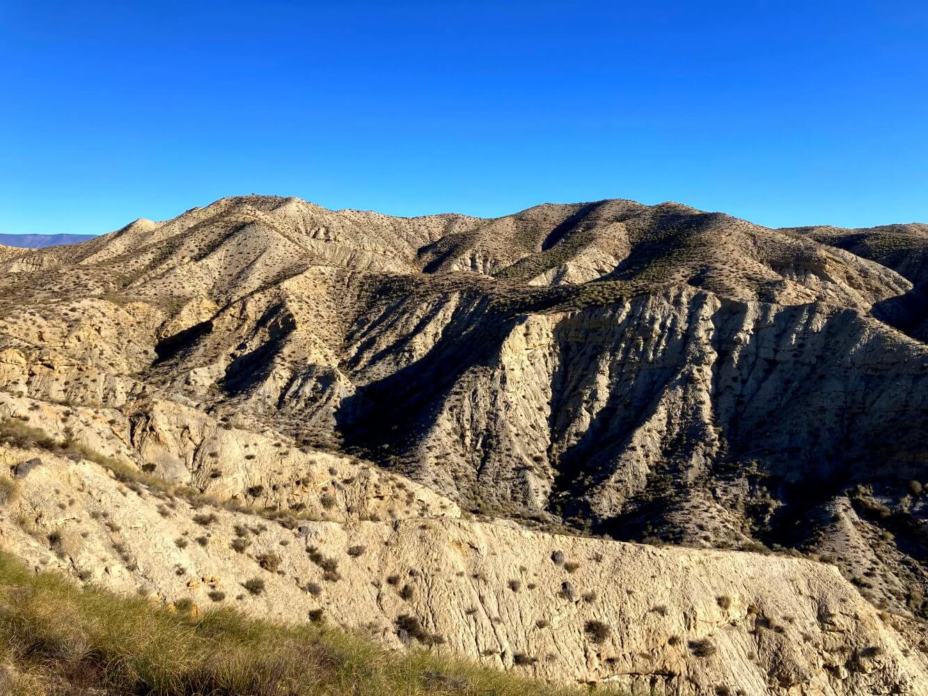 Ganz auf die leichte Schulter hab die Sache aber auch nicht genommen. Ich wusste nicht genau, wie es im Inneren der Wüste aussieht, nur dass es viele Canyons und Trockenflussbette gibt, die hier „Ramblas“ heißen. Dazwischen steile, verwitterte und möglicherweise unüberwindbare Höhenzüge – die charakteristische Landschaftsform der „Badlands“. Ohne sichere Wege und keinerlei Zugang zu Wasser auch nicht gerade das einfachste Terrain zum Wandern.
