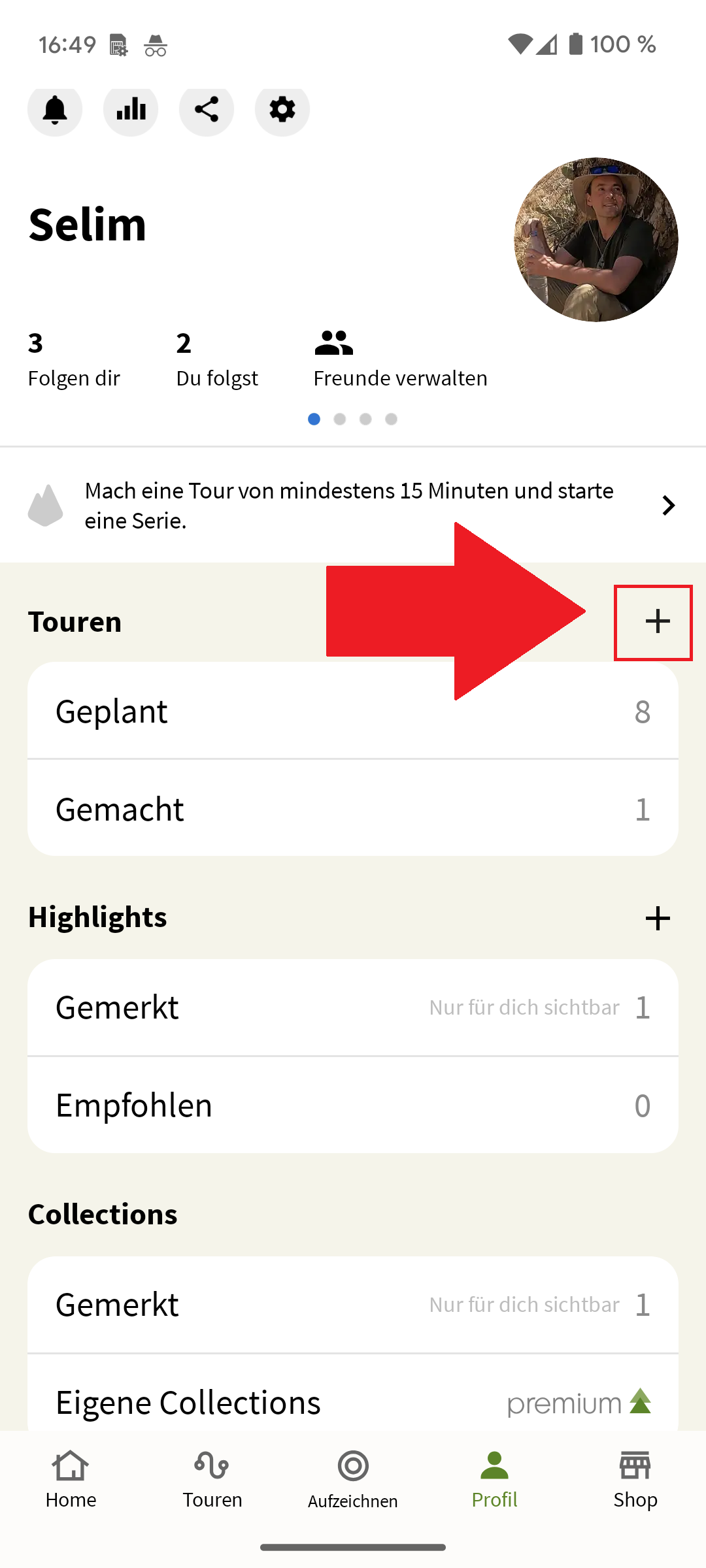 - Die Tour wird importiert. Du findest sie dann unter „Meine Touren“.