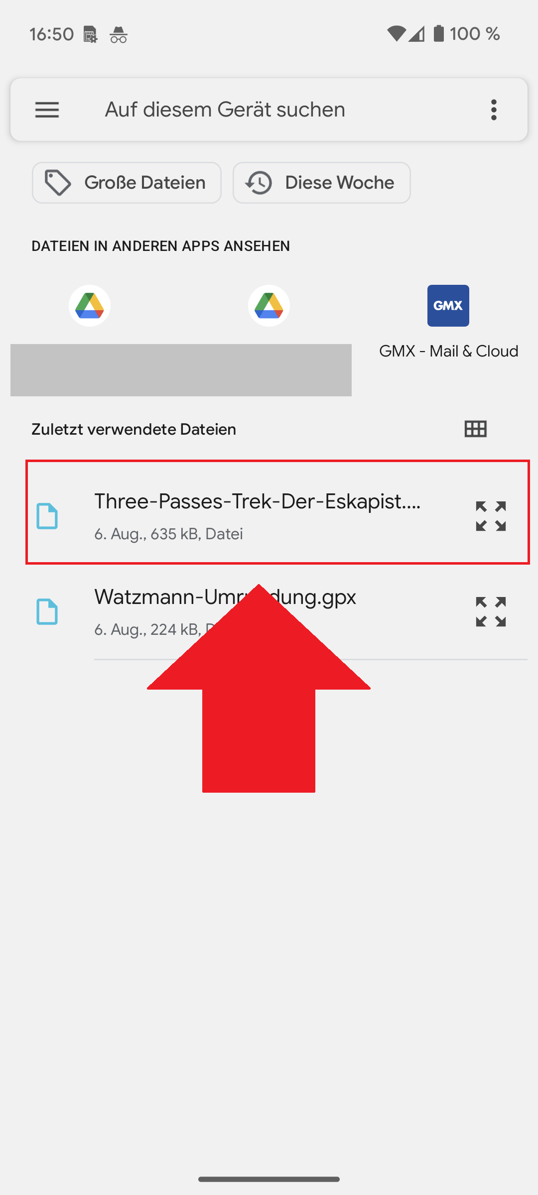 Mit der Smartphone App-von Google Maps kannst du keine GPX-Dateien hochladen und importieren. Du kannst aber immerhin die am Desktop hochgeladenen Dateien damit öffnen. Das geht so: